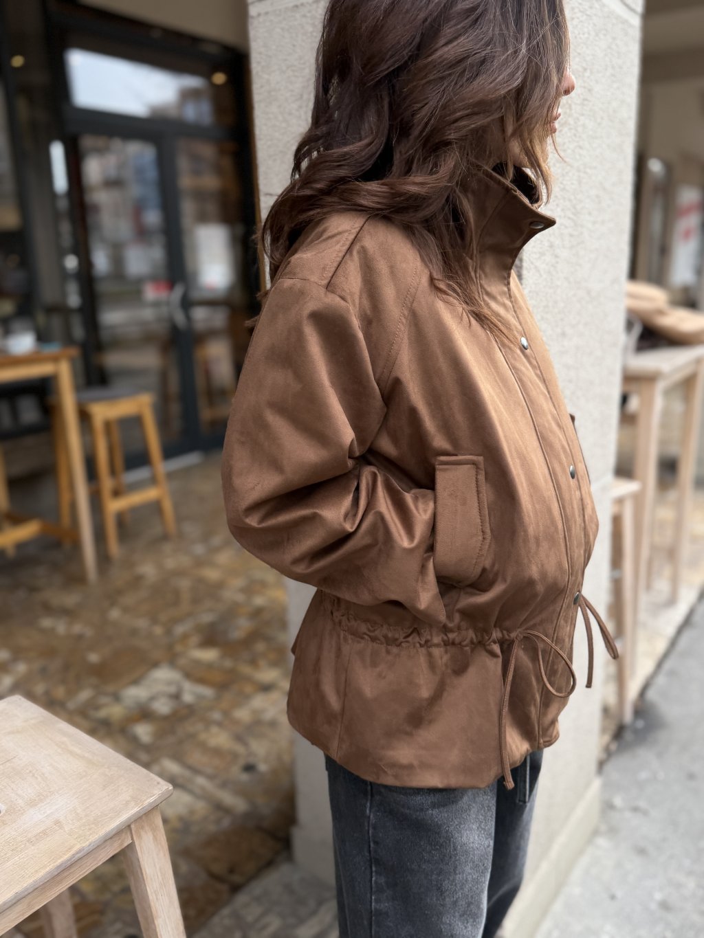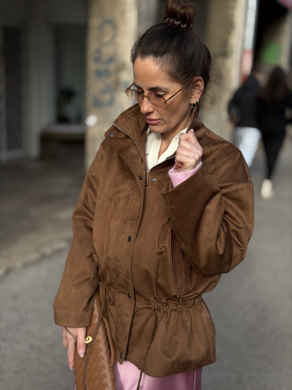 Čistý dizajn bez zbytočných detailov pôsobí moderne a nadčasovo, zatiaľ čo hnedý odtieň sa ľahko kombinuje s neutrálnymi aj kontrastnými farbami. Táto prechodná bunda je ideálna pre ženy, ktoré chcú praktický kúsok do mesta, práce aj na voľný čas, no nechcú sa vzdať elegantného vzhľadu.
