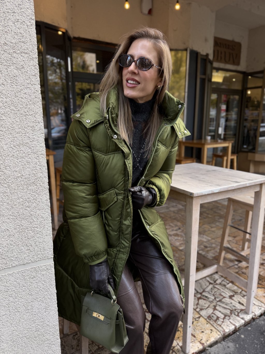 Matný povrch pôsobí moderne a luxusne, bez lacného lesku. Stojatý golier a nastaviteľné detaily pridávajú funkčný prvok a zlepšujú prispôsobenie bunde podľa potreby. Zelená farba krásne ladí s hnedými, čiernymi aj sivými outfitmi a dodáva zimnému looku príjemnú živú energiu.