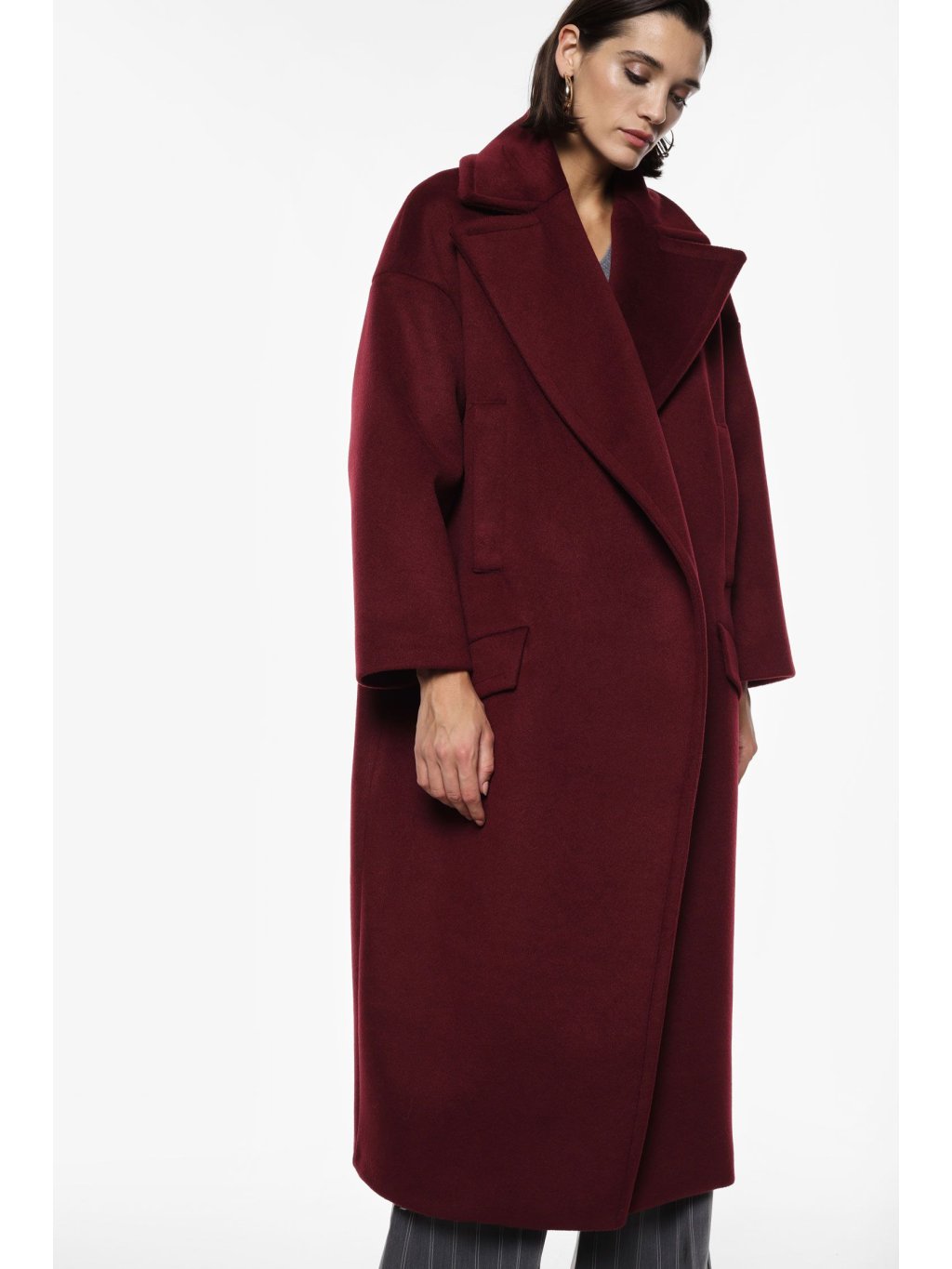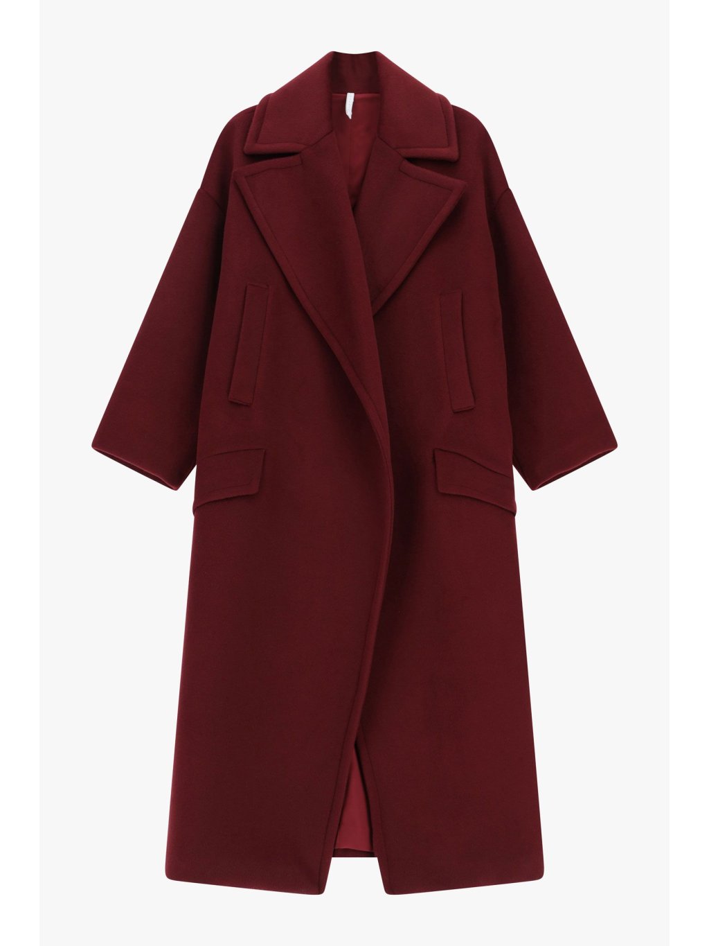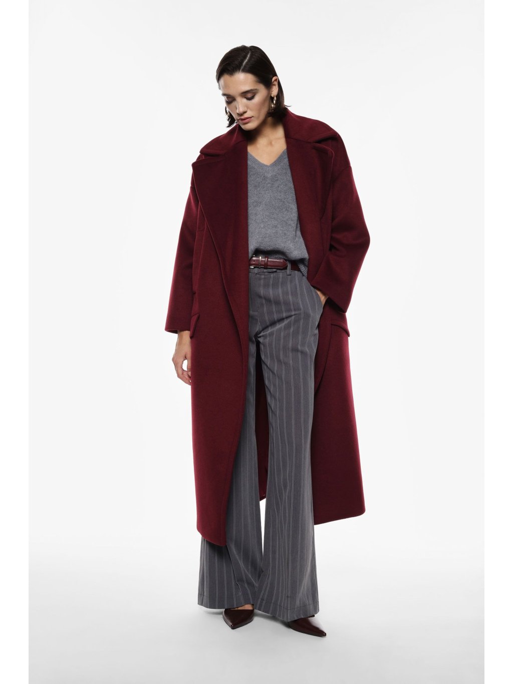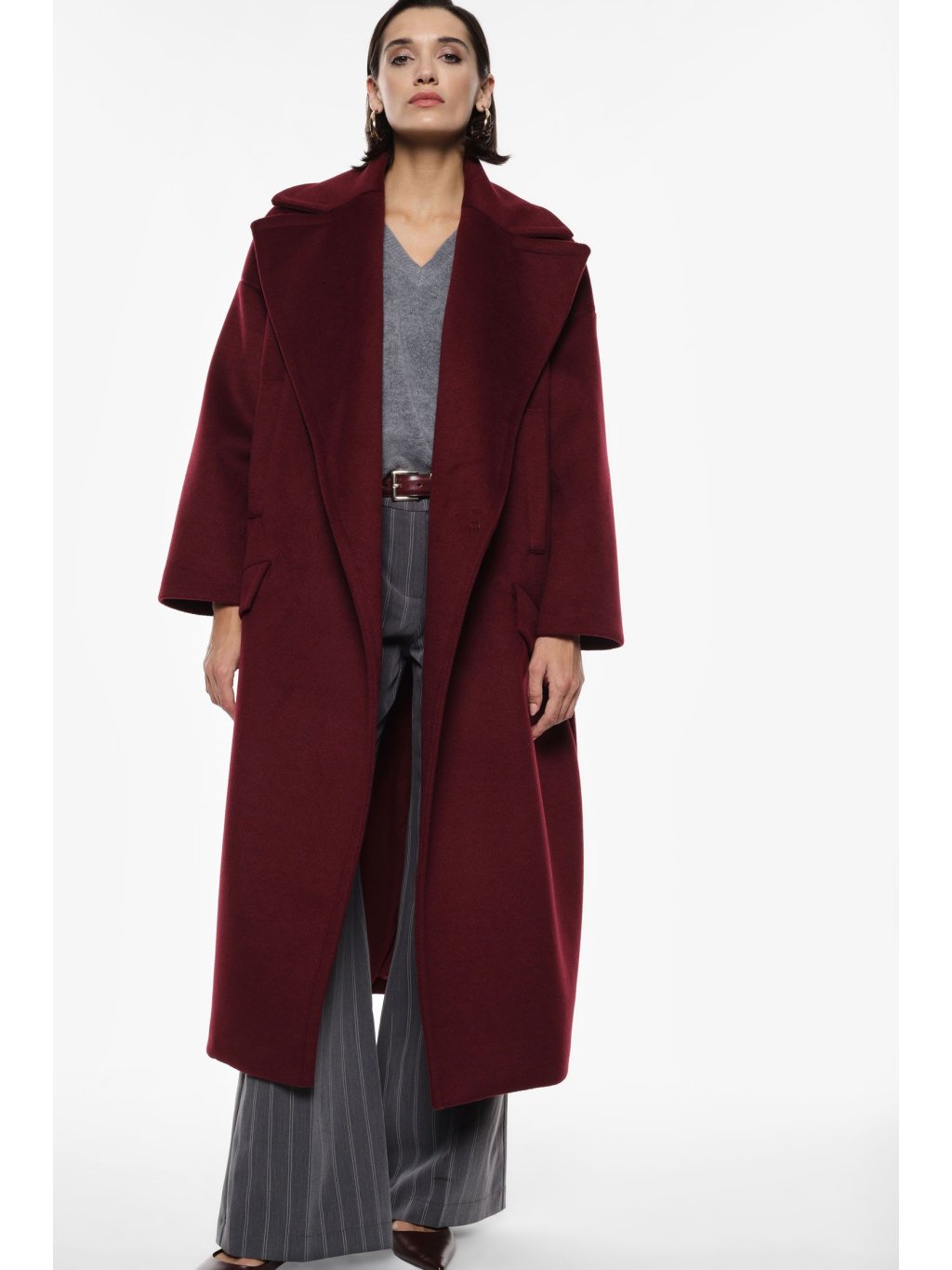 Oversize kabát v odtieni burgundy od značky Imperial prináša ikonickú siluetu v najženskejšej podobe. Bohatý vínový tón pôsobí ako farebný akcent celého outfitu, no zároveň si zachováva eleganciu a nadčasovosť.