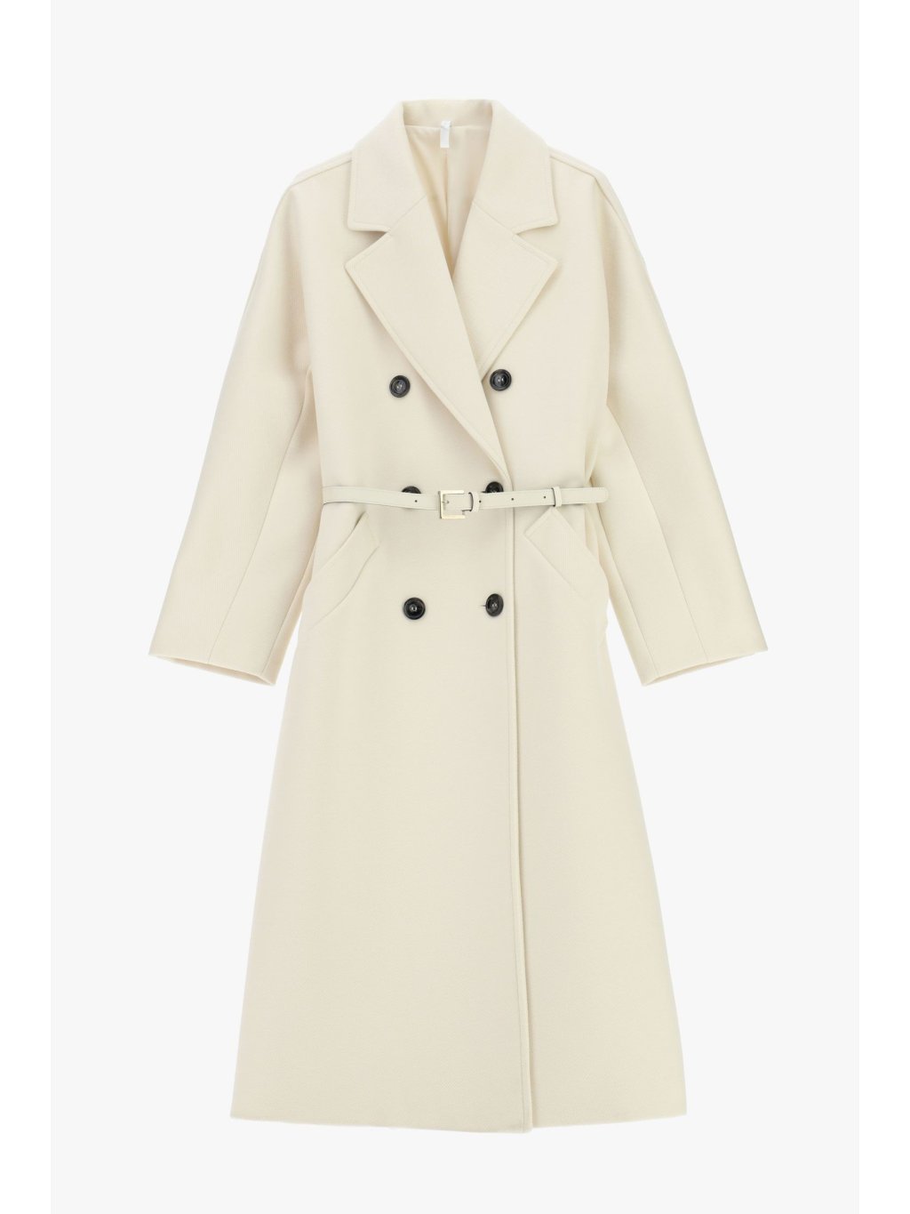 Kabát Imperial s opaskom v odtieni panna (kremová) je dokonalým stelesnením talianskej elegancie. Jeho klasický dvojradový strih doplnený decentným opaskom zvýrazňuje ženskú siluetu, zatiaľ čo mäkká vlnená zmes zaručuje hrejivosť a komfort.