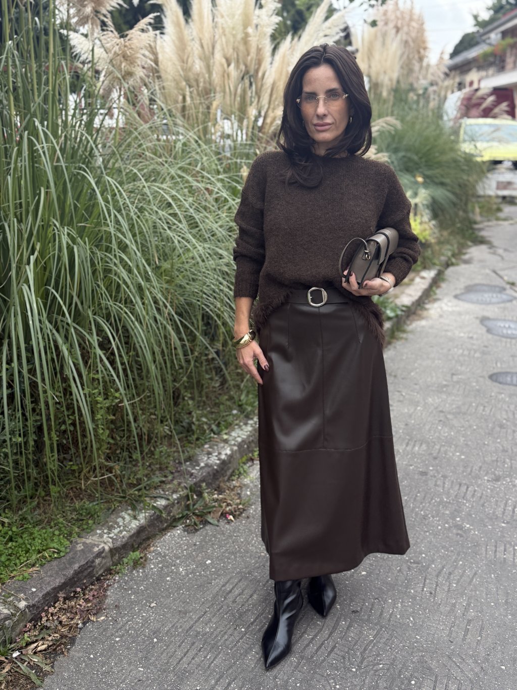 Midi dĺžka a jemne rozšírený strih opticky predlžujú siluetu, zatiaľ čo pevný pás so sponou krásne zvýrazní ženské krivky. Sukňa je ideálna na elegantné aj ležérne kombinácie – cez deň s pleteným svetrom, večer so saténovou blúzkou a podpätkami.