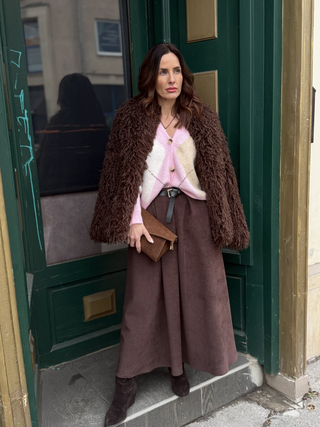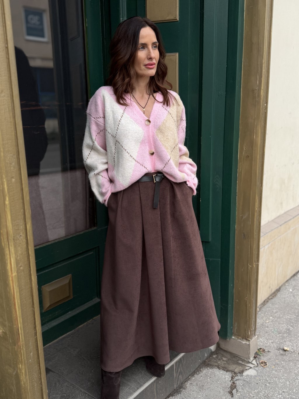 Jemne splývavá maxi sukňa v čokoládovom odtieni je presne ten typ kúsku, ktorý prirodzene zapadne do premysleného šatníka. Dĺžka po členky predlžuje siluetu a mäkký materiál sa krásne hýbe pri chôdzi, vďaka čomu sukňa nepôsobí ťažko ani striktne. Farba funguje ako elegantná alternatíva ku klasickej čiernej - je mäkšia, sofistikovanejšia a výborne kombinovateľná. Tento model ocenia ženy, ktoré stavajú na kvalitných základných kúskoch a radi ich kombinujú s úpletmi, blúzkami či sakami. Skvelo zapadne medzi maxi sukne aj do širšej kategórie sukne, ktoré fungujú naprieč sezónami.