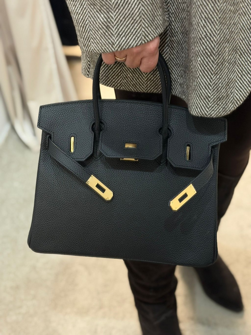Luxusný vzhľad bez kompromisov ✨ Čierna štruktúrovaná kabelka so zlatými detailmi pôsobí elegantne, nadčasovo a veľmi žensky. Je to typ modelu, ktorý okamžite pozdvihne celý outfit — či už ideš do práce, na meeting alebo na večerné stretnutie v meste.