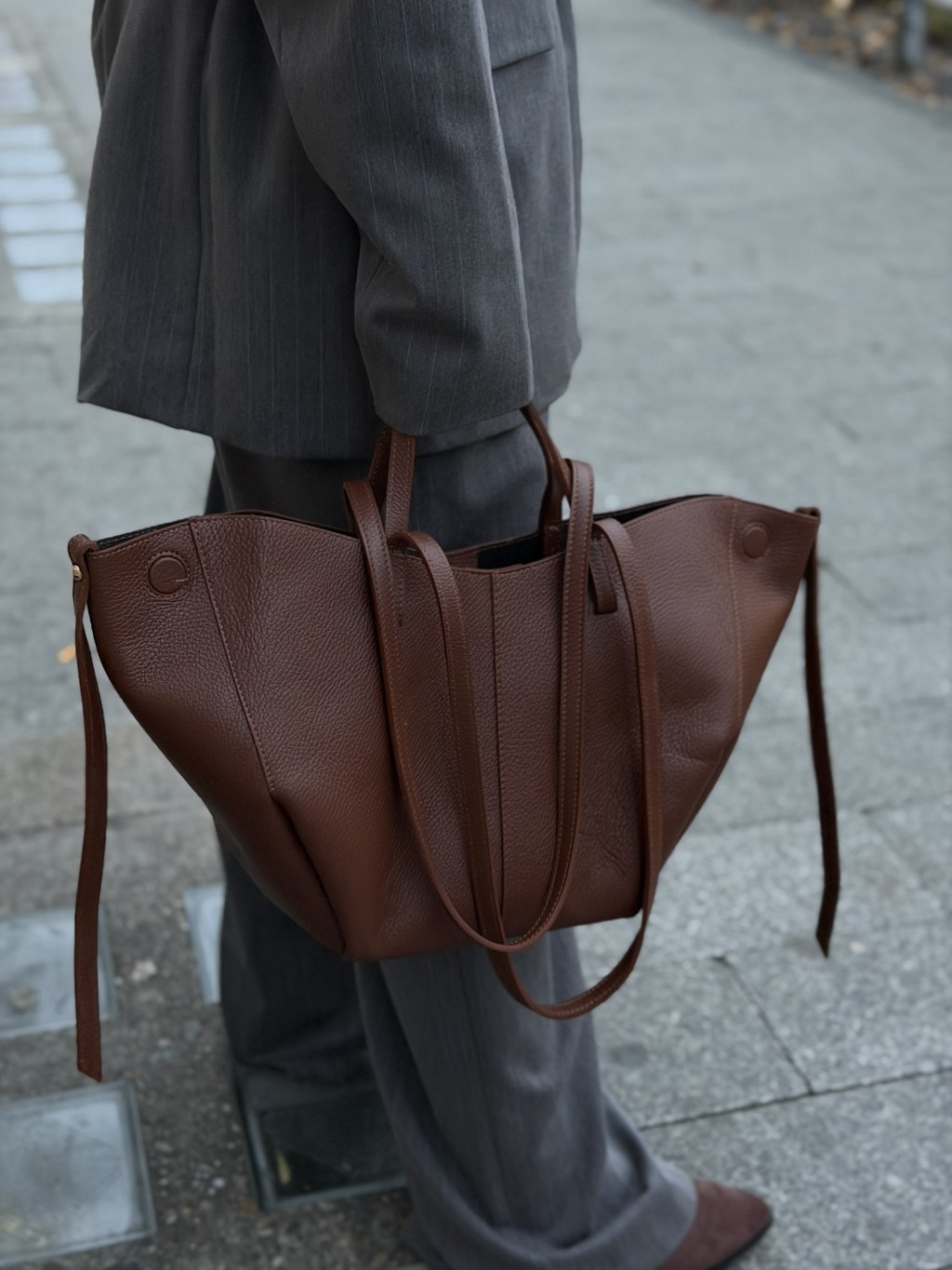 Táto elegantná hnedá kabelka patrí medzi presne tie kúsky, ktoré pôsobia luxusne, ale zároveň prakticky. Vďaka svojmu priestrannému tvaru je ideálna aj na každodenné nosenie – od práce, cez meetingy, až po bežné mestské outfity.