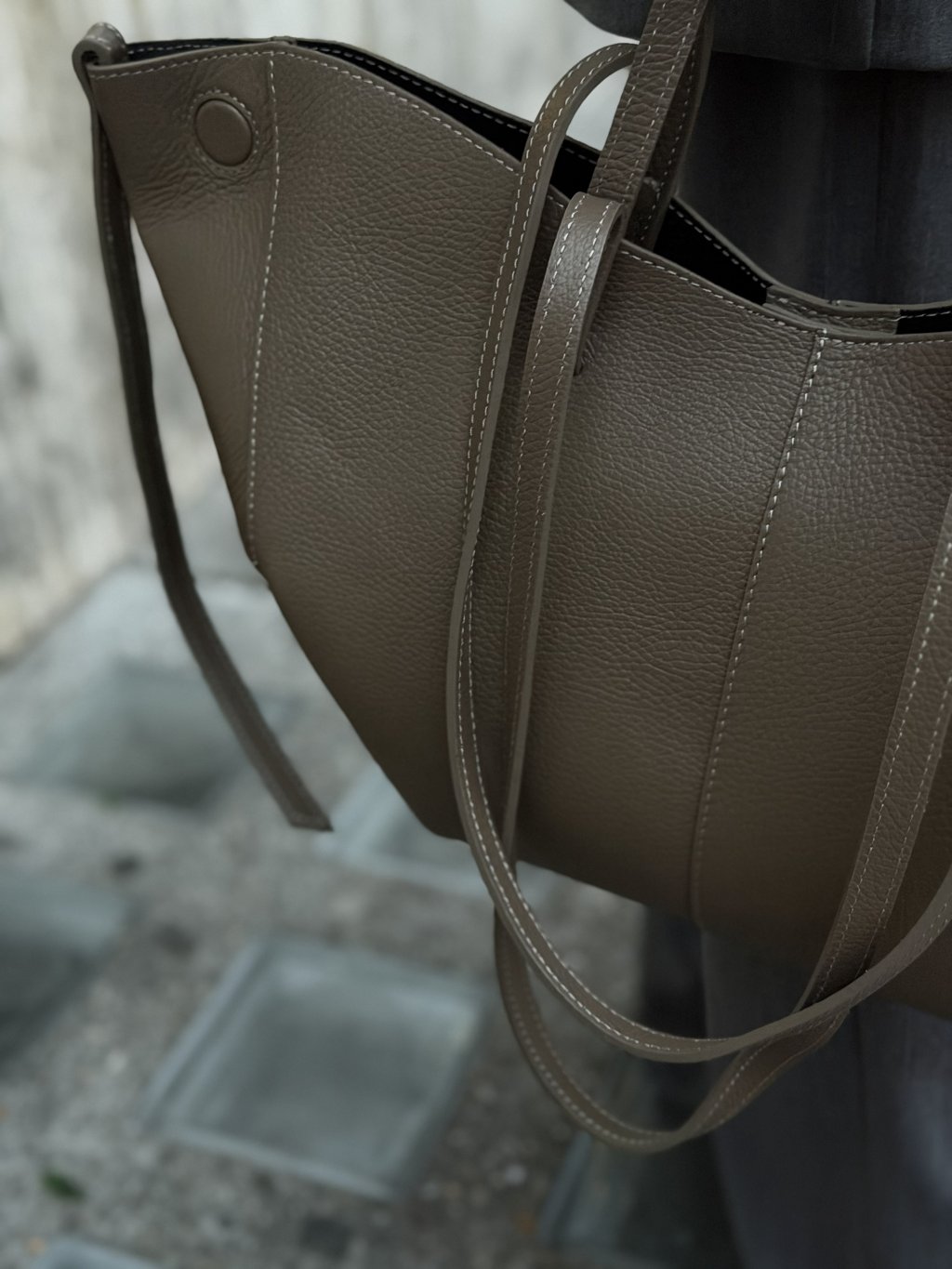 Táto taupe kabelka patrí medzi tie univerzálne kúsky, ktoré dokonale zapadnú do šatníka každej ženy. Je mimoriadne priestranná, a preto ideálna na celodenné nosenie – do práce, na meetingy aj na víkendové pochôdzky.