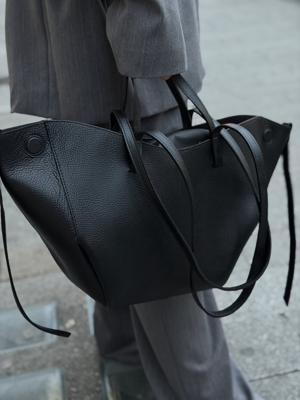 Vďaka dlhým rúčkam ju pohodlne prenesieš v ruke aj na ramene, pričom vnútorný priestor pojme všetky denné nevyhnutnosti. Minimalistické línie podčiarkuje čistá čierna farba, ktorá sa ľahko kombinuje so všetkými odtieňmi v šatníku.