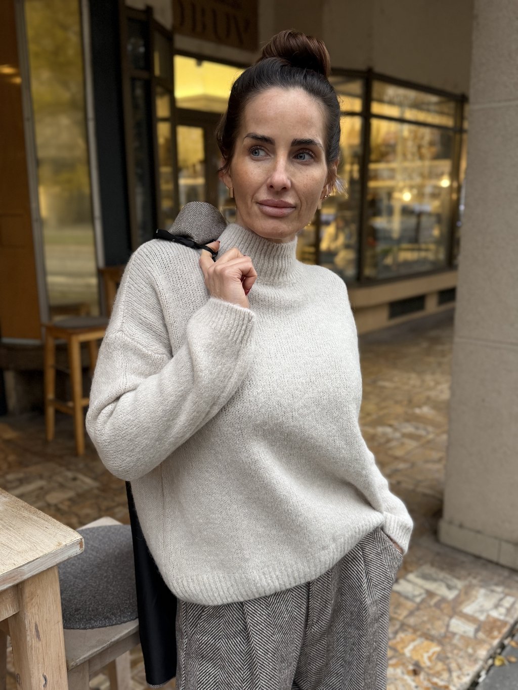 Tento hrubý polorolák v béžovo-šedom odtieni je dokonalým spojením hrejivosti, prirodzenej elegancie a talianskeho nadčasového štýlu. Jemná, mäkká zmes s podielom baby alpaky vytvára neobyčajne komfortný úplet, ktorý príjemne zahreje, no zároveň pôsobí vzdušne a ľahko.