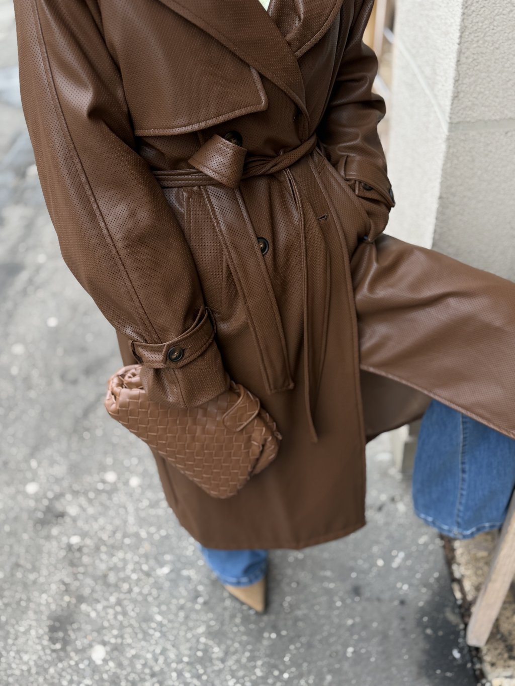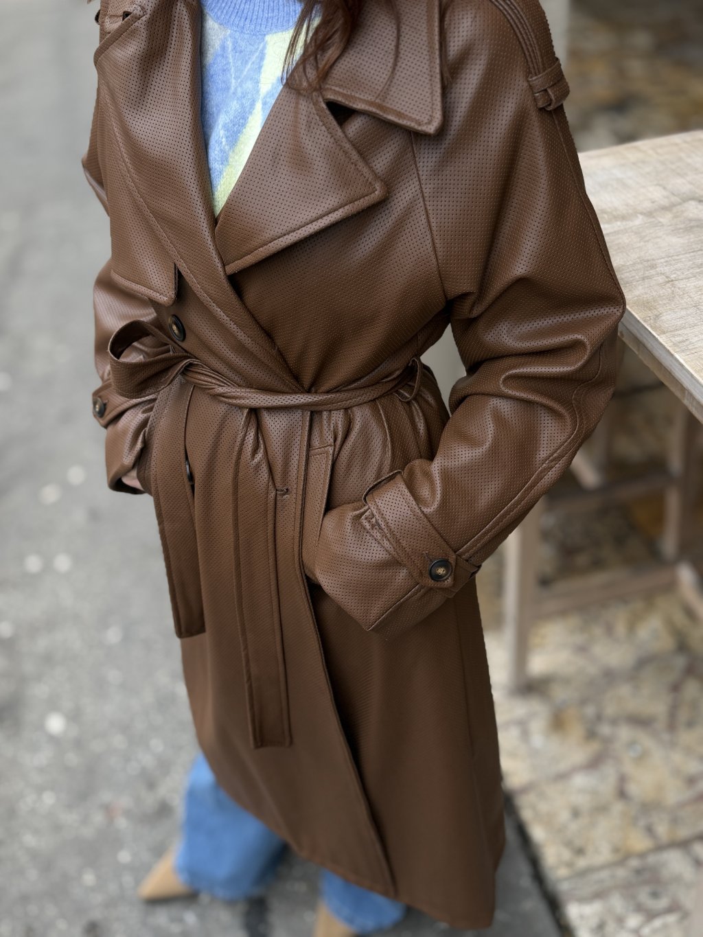 Hnedý odtieň pôsobí mäkšie než klasická čierna, no zachováva rovnakú univerzálnosť. Tento prechodný trenchcoat je ideálny pre ženy, ktoré majú rady nadčasové kúsky s moderným twistom a chcú kabát, ktorý bez problémov obstojí v meste, v práci aj počas voľných dní.