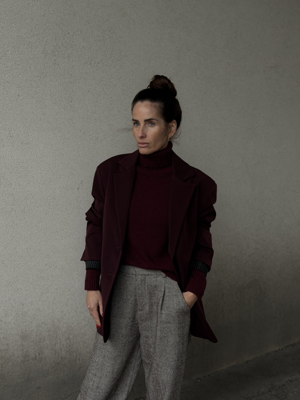 sýty burgundy odtieň, ktorý zvýrazní pleť aj jednoduchý outfit
