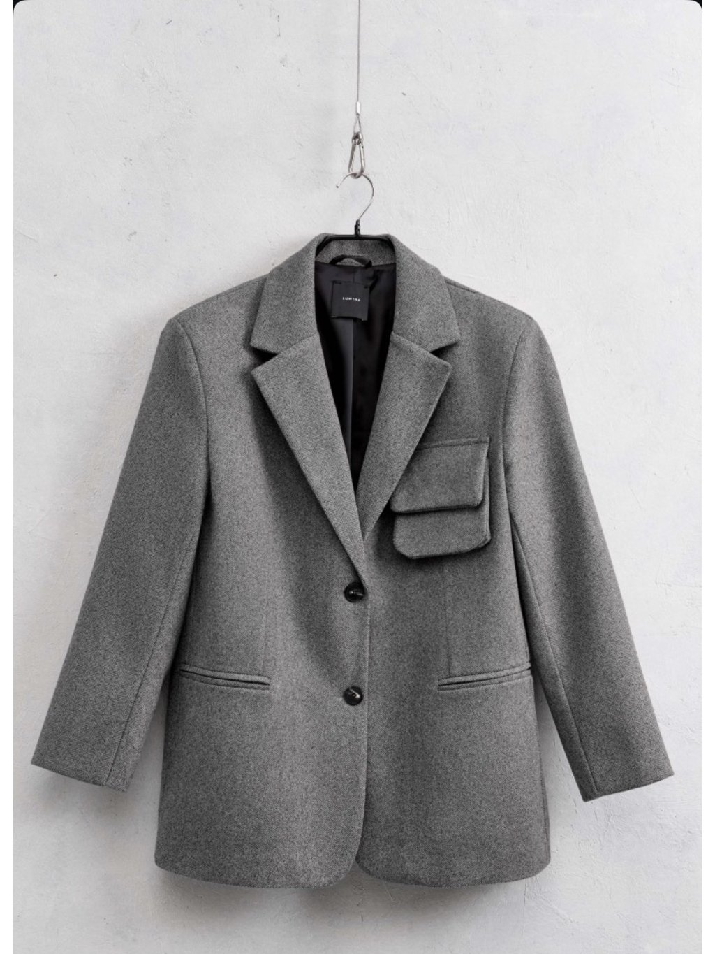 Vyrobené z kvalitného materiálu s podielom vlny, vďaka čomu je sako teplé, príjemné na dotyk a výborne drží tvar. Univerzálna sivá farba umožňuje jednoduché kombinovanie – perfektne sa hodí k čiernej, bielej, burgundy či tabacco odtieňom.