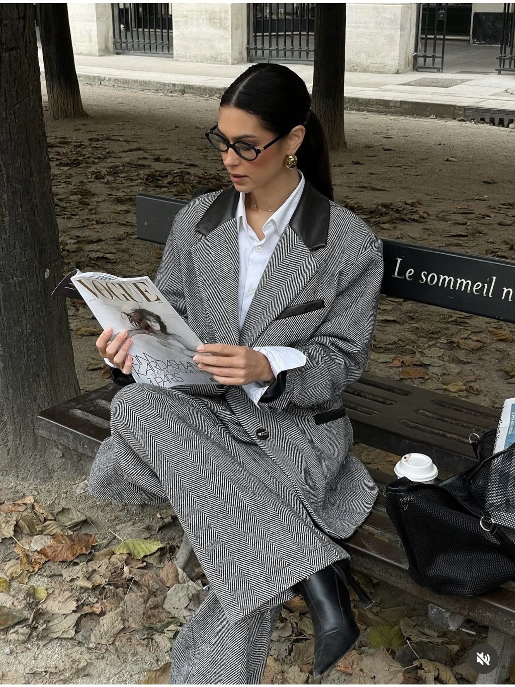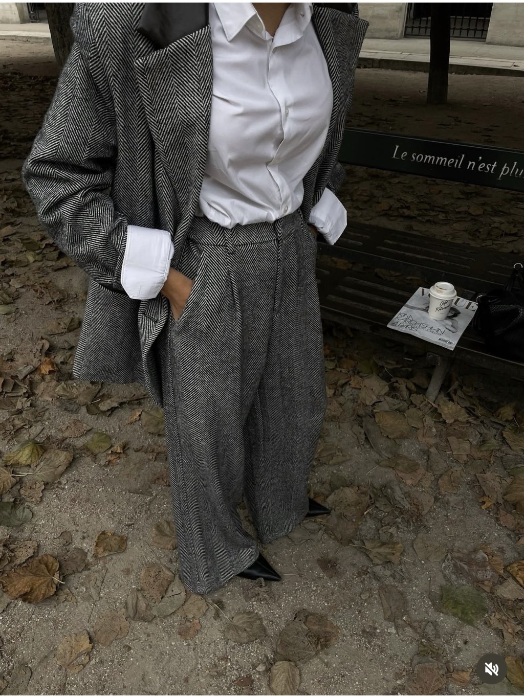 Toto oversize sako v čierno-sivej prúžkovanej / rybej kosti prináša elegantný parížsky nádych do každodenného stylingu. Je navrhnuté tak, aby pôsobilo uvoľnene, sofistikovane a súčasne veľmi moderne. Štruktúrovaný vzor dodáva hĺbku a charakter, zatiaľ čo voľný strih zabezpečí komfort počas celého dňa.