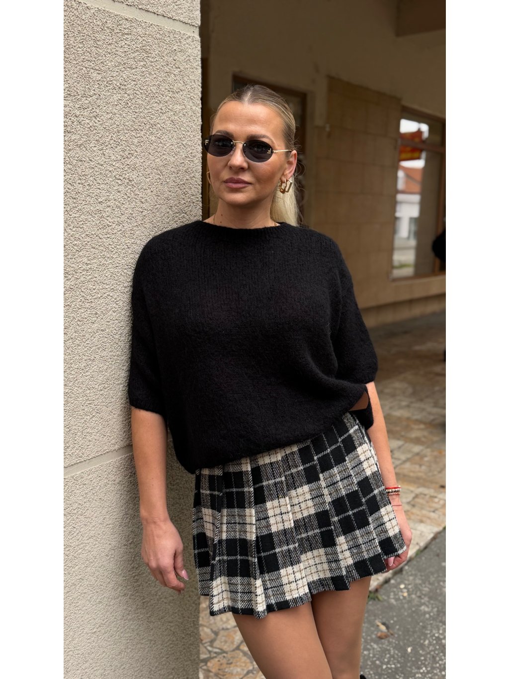 Jemná zmes moheru a vlny dodáva tomuto čiernemu svetru nadýchaný vzhľad a luxusný dotyk, ktorý je ideálny na vrstvenie v jesennom aj zimnom období. Krátky rukáv pôsobí moderne a umožní ti vytvoriť upravený, ženský outfit bez toho, aby pôsobil príliš teplo alebo robustne.