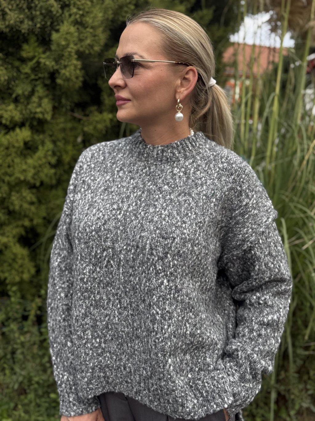 Hebký sveter v odtieni melírovanej sivej je synonymom pohodlia a nadčasového štýlu. Vyrobený z mäkkého úpletu, ktorý jemne obopína postavu a zároveň poskytuje pocit tepla počas chladnejších dní. Vďaka univerzálnej veľkosti a uvoľnenému strihu sa prispôsobí každej postave – pôsobí ležérne, no elegantne zároveň.
